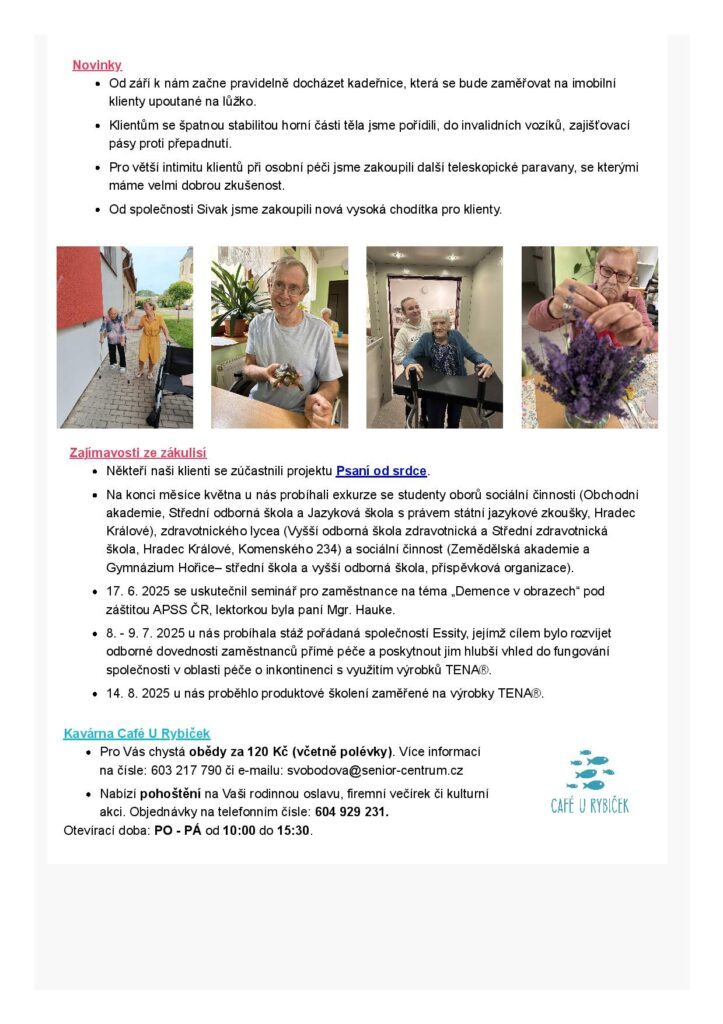 Léto u nás bylo plné radosti, slunce a společných zážitků. Jak jsme si užili letní slavnosti, tvořivé terapie nebo výlety do přírody? Nenechte si ujít nové vydání našeho minizpravodaje! 📸🍧